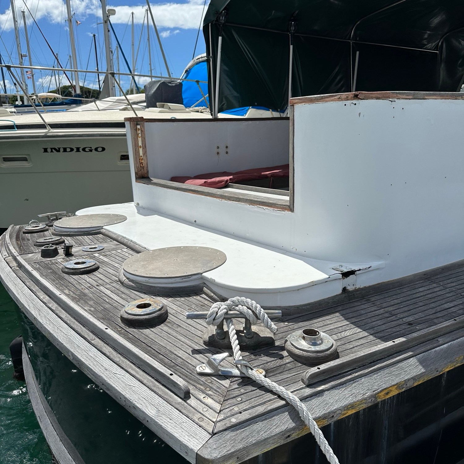 This Navy Barge is powered by its original 671 Detroit Diesel. Several of the original railings are missing. I have contacted Willard Marine; the company that manufactures these fine vessels and requested their help in finding quality replacement parts. This is too fine of a vessel to just give up on. Please help in the restoration of this Historical Admiral’s Barge, let’s return it to its glory days.